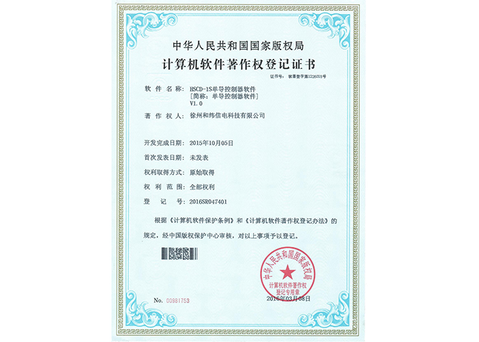 • 10軟件產品登記證書——和緯信電HSCD-2單向導通控制器軟件V1.3